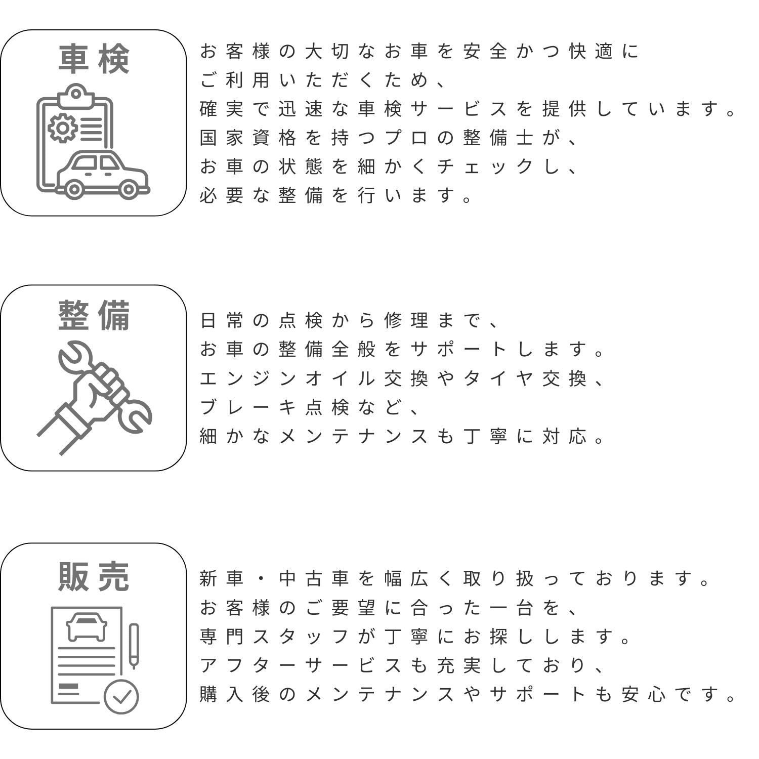 私たちは、常にお客様の立場に立ち、大切なお車を長く安全に乗り続けていただけるよう、